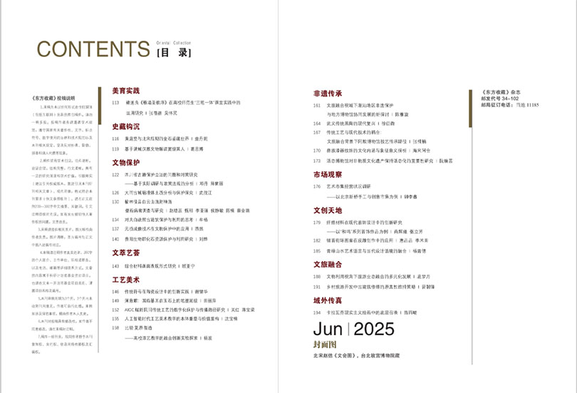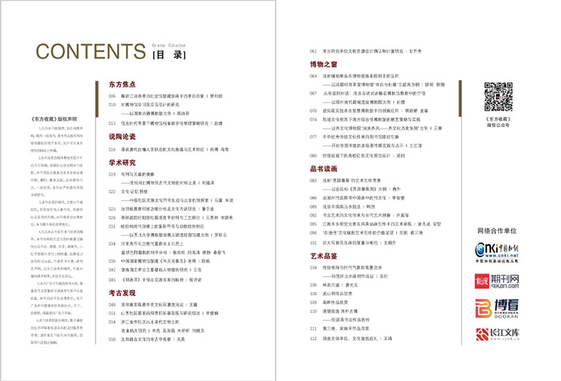 为了打造权威的收藏类期刊,《东方收藏》杂志依托专家团队、大专院校、科研院所、收藏社团、博物馆院、艺术品投资、评估、交易机构等,集合全国文博、鉴藏界力量,确保杂志内容的专业性和前沿性。无论是对于收藏爱好者还是行业从业者,该杂志都是一本不可或缺的重要参考资料和学习平台。